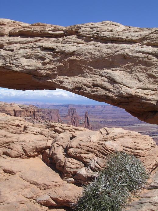 Blick duch den Mesa Arch im Canyonlands NP