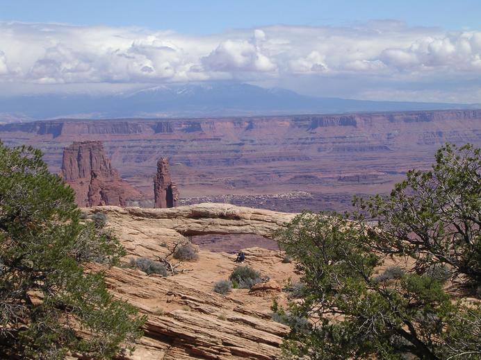 The Mesa Arch in the canyon landscape of the Islands in the Sky District