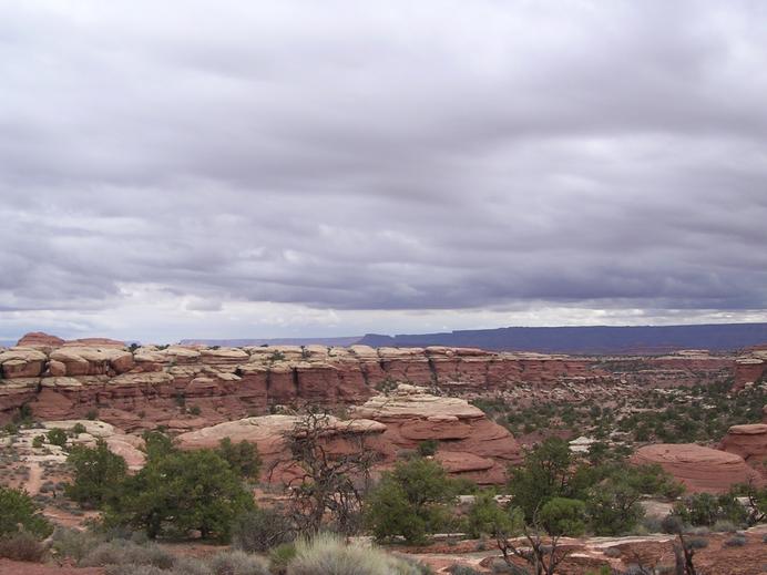 Die typische Landschaft des Needles District, bloß bei schlechtem Wetter