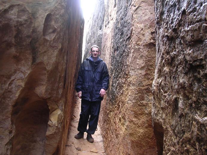 Olaf im engen Slot Canyon des Joint Trail im Canyonlands NP
