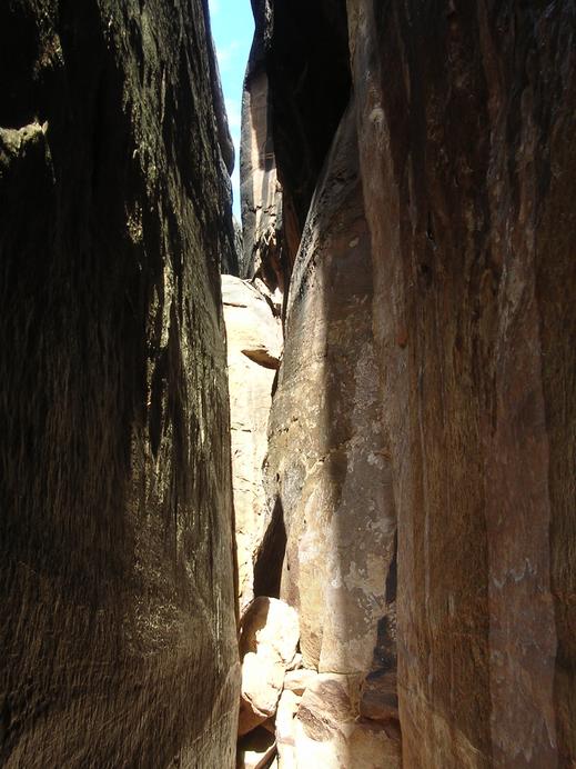 Der Joint Trail im Needles District mit ein paar Felsblöcken im Weg