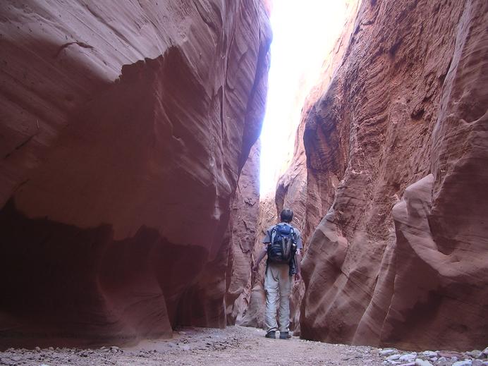 Olaf auf Entdeckungstour in der Dry Fork Coyote Gulch (wo ist nur mein Hut?)