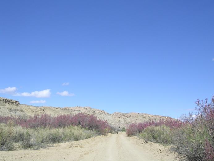 Irgendwelche roten Pflanzen säumen die staubige Cottonwood Road