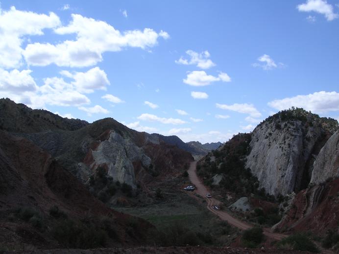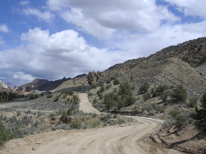 Straße und Stromleitung teilen sich das Tal der Cockscomb