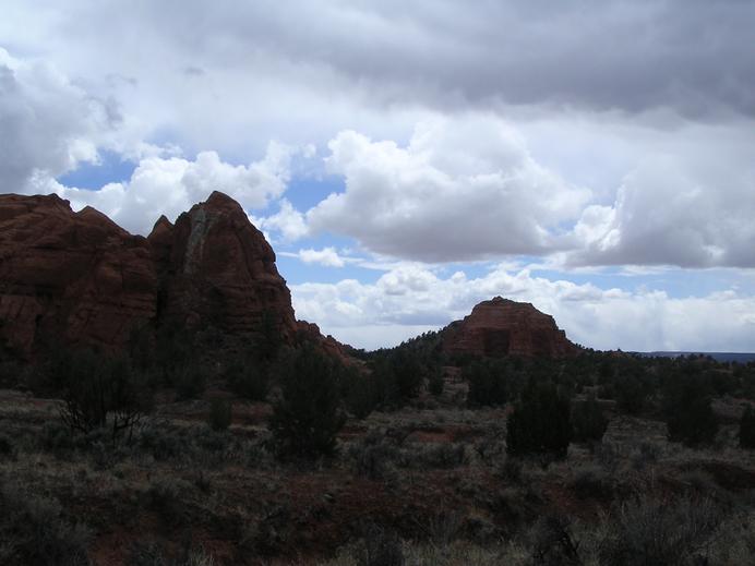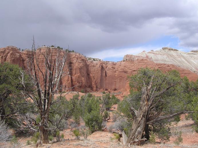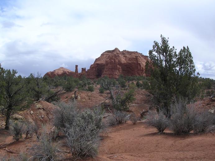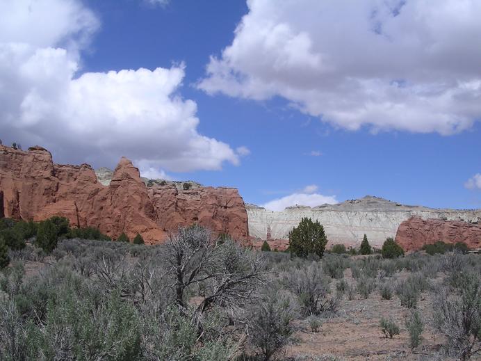 Rote Felsen in der grünen Ebene des Kodachrome Basin SP